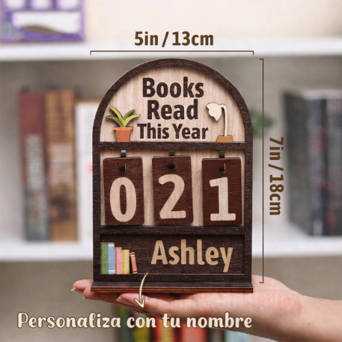 Es ambas cosas. Funciona como un contador real para llevar el registro de los libros que terminas, pero también está diseñado para verse bonito en tu estantería o rincón de lectura. Une utilidad y estética en una sola pieza.